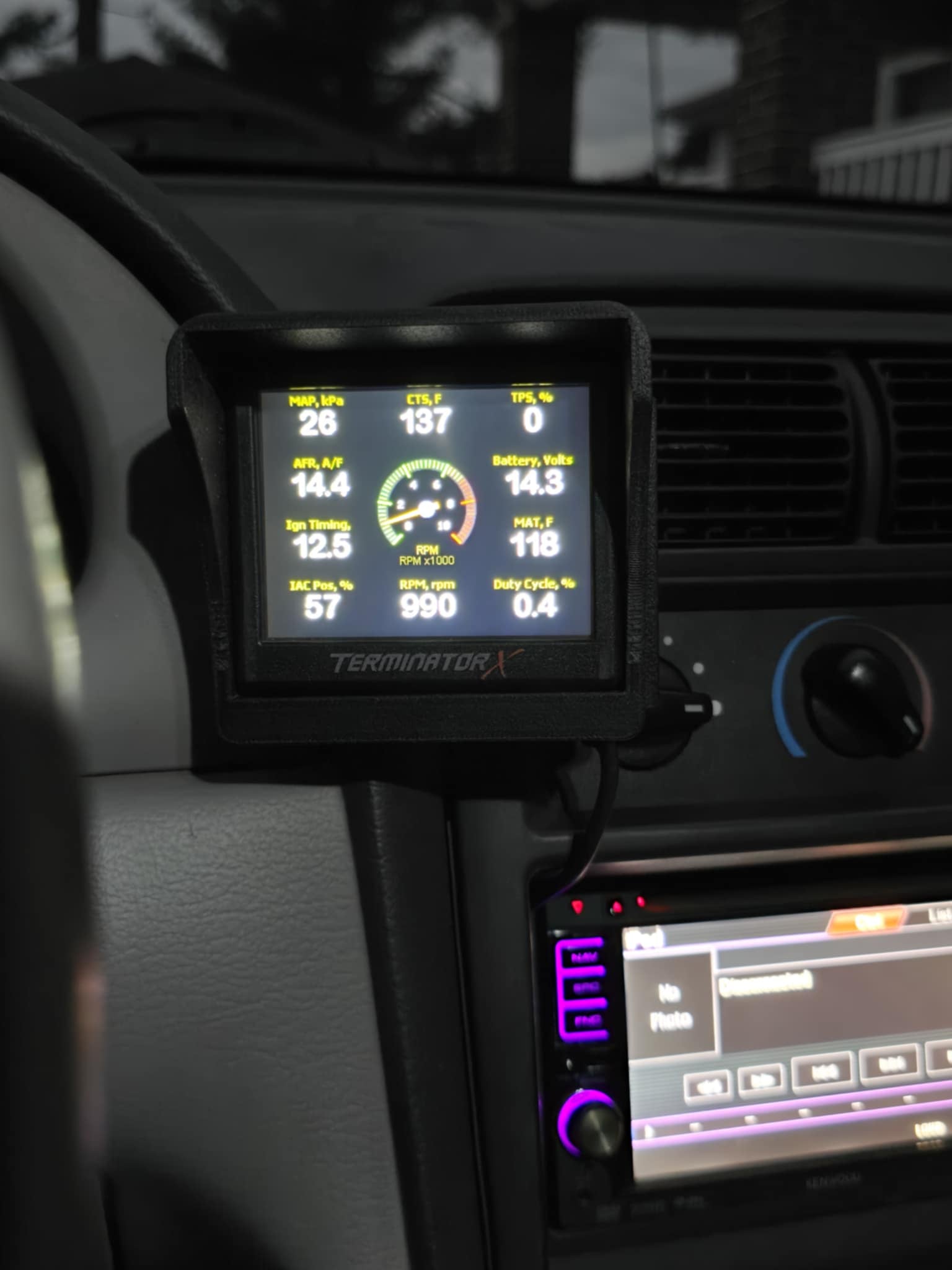 This piece includes a metal bracket that mounts behind the radio bezel and has an articulating ball mount to give u optimal viewing of your holley screen. This can be adapted to other screens if need just email us at carchains3d@gmail.com.