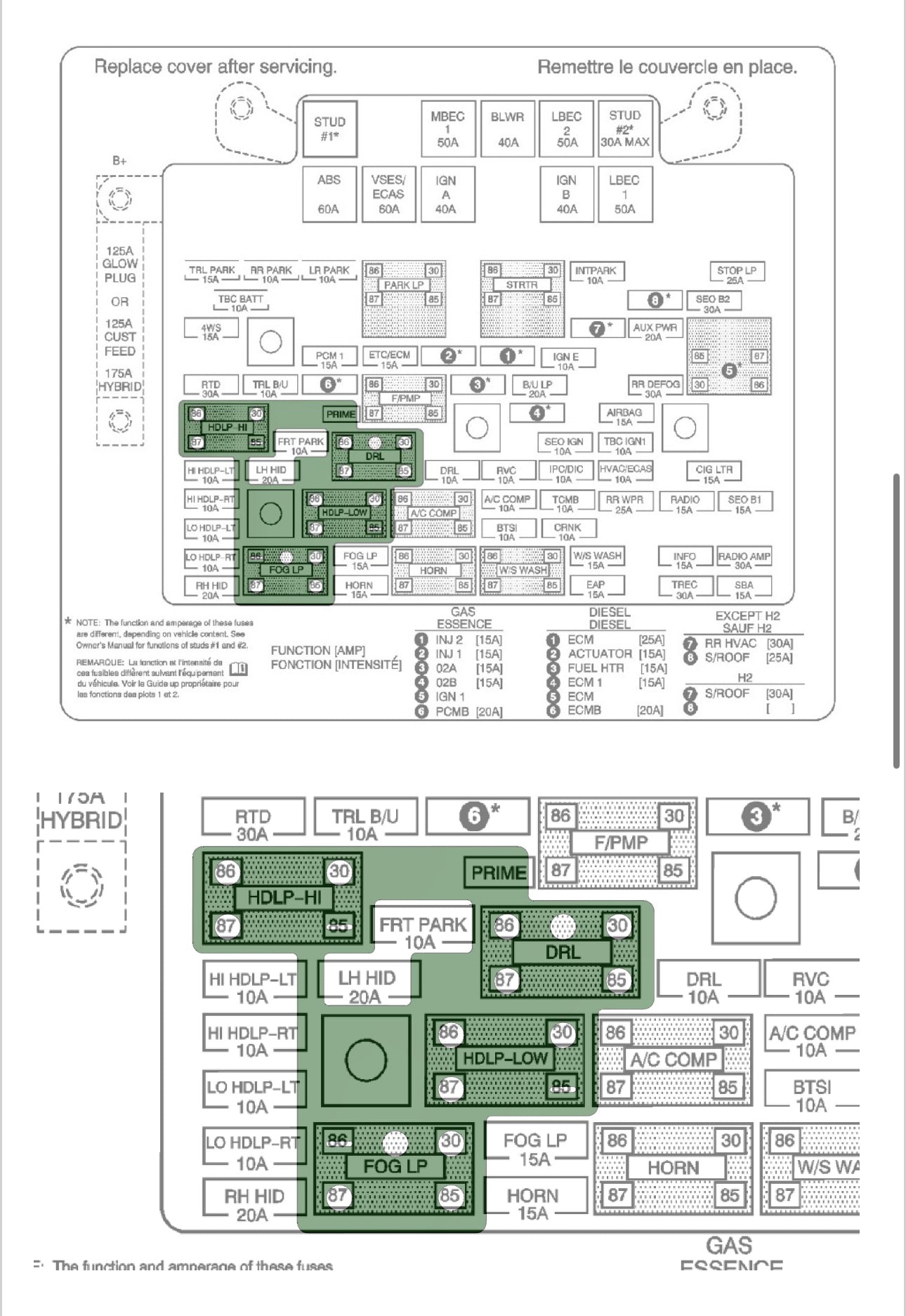1. Remove the relays labeled: FOG LP, HDLP-LOW, DRL, HDLP-HI