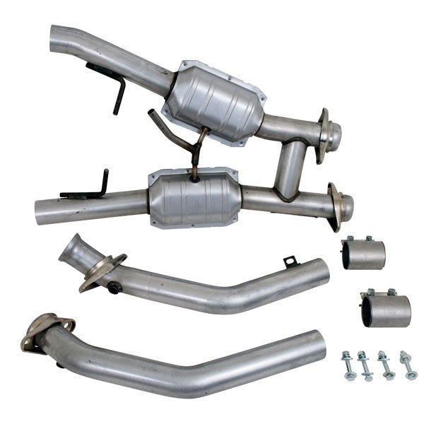 BBK Performance catted h-pipes are a direct fit and work with factory exhaust manifolds or aftermarket shorty headers. The h-pipe comes with oxygen sensor bungs in the factory location making installation a breeze. High flow catalytic converters are used for better exhaust flow.