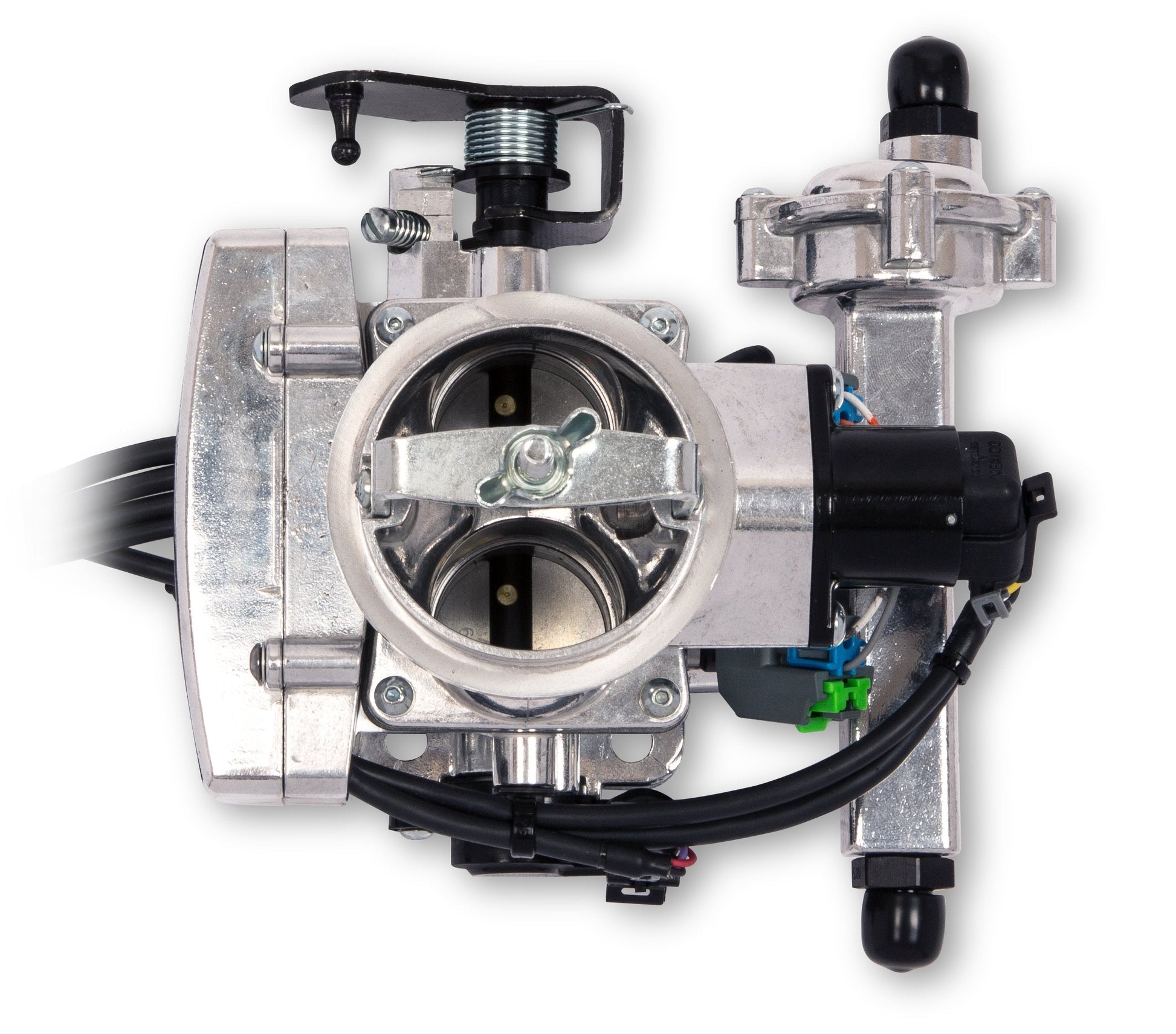 Let's face it, you love driving your classic car, but dread the hassles with your Rochester 2GC Large Bore carburetor. Today's fuels are blended for modern fuel injection, not that old 2 Jet carburetor from 50+ years ago. Holley makes it easy to convert your classic car with a Rochester 2GC Large Bore two barrel carburetor to fuel injection. The Sniper EFI 2GC Large Bore is a bolt on electronic fuel injection system that will put the fun back in your classic ride. The Rochester 2GC Large Bore carburetor was commonly used on 1974 - 1978 Chevrolet, GMC, Oldsmobile, and Pontiac vehicles such as the Camaro, Firebird, El Camino, Corvette, Omega and most C-10 through K3500 series trucks. Check out our year/make/model application search at Holley.com! Installation of the Sniper EFI 2GC Large Bore throttle body is simple and straightforward: Remove your current carburetor and bolt on the new Sniper EFI system. No intake manifold adapters required! Reinstall your factory or custom air cleaner. The Sniper EFI 2GC air cleaner flange matches the Rochester 2GC so it accepts most factory air cleaners. Not only does the Sniper EFI 2GC offer superior throttle response and WOT power over the carburetor, but you may also benefit from increased fuel economy! Put an end to cold start issues, hesitations, vapor lock, and flooding with the accuracy of EFI. You can also use the Sniper EFI 2GC to control the ignition timing, taking EFI to the next level. The Sniper EFI 2GC system is capable of supporting 350 HP on naturally aspirated engines. Upgrade to Sniper EFI today!