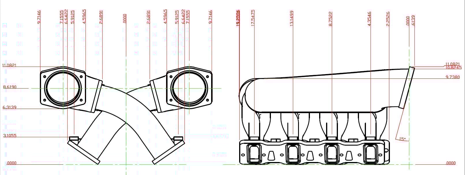 - Intake runners with tapered top is designed to increase air velocity and more evenly distribute airflow to all 8 cylinders improving performance and throttle response